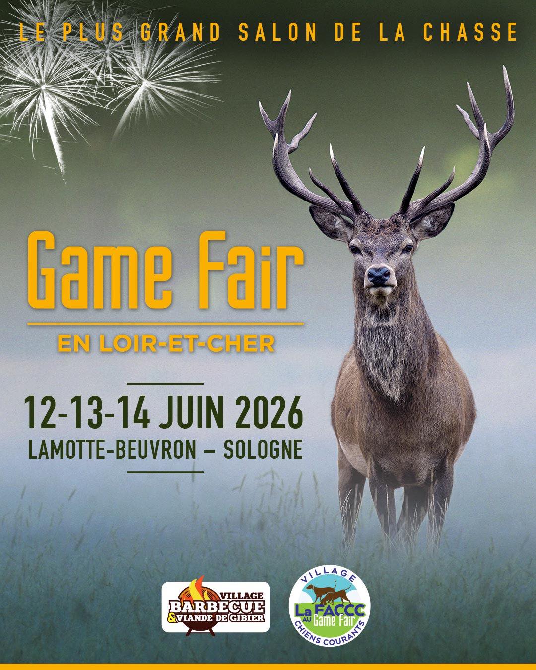 Du 12 au 14 juin 2026, le Game Fair en plein cœur de la Sologne. Considéré comme le plus grand salon de la chasse et de la nature en France, cet événement incontournable rassemble chaque année des centaines d’exposants et des dizaines de milliers de visiteurs passionnés de nature, de chasse et d’activités de plein air.
